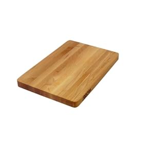 Add a handsome yet highly functional tool to your kitchen arsenal with this wooden cutting board from John Boos. Made of solid hard rock maple with edge-grain construction for durability, the reversible cutting board provides two flat sides and slightly rounded edges for comfortable handling. The finely crafted board, which measures 20 by 15 by 1-1/4 inches, works well for a variety of food-prep tasks, whether chopping meat, slicing and dicing fruits and vegetables, or mincing fresh herbs.