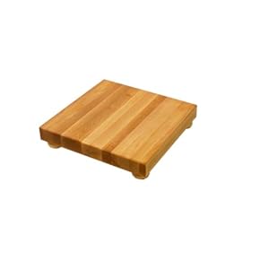Add a handsome yet highly functional tool to your kitchen arsenal with this wooden cutting board from John Boos. Made of solid maple with edge-grain construction for durability, the square-shaped cutting board comes with four wooden feet, slightly rounded edges, and a smooth work surface. The finely crafted board, which measures 12 by 12 by 1-1/2 inches, works well for a variety of food-prep tasks, whether chopping meat, slicing and dicing fruits and vegetables, or mincing fresh herbs.